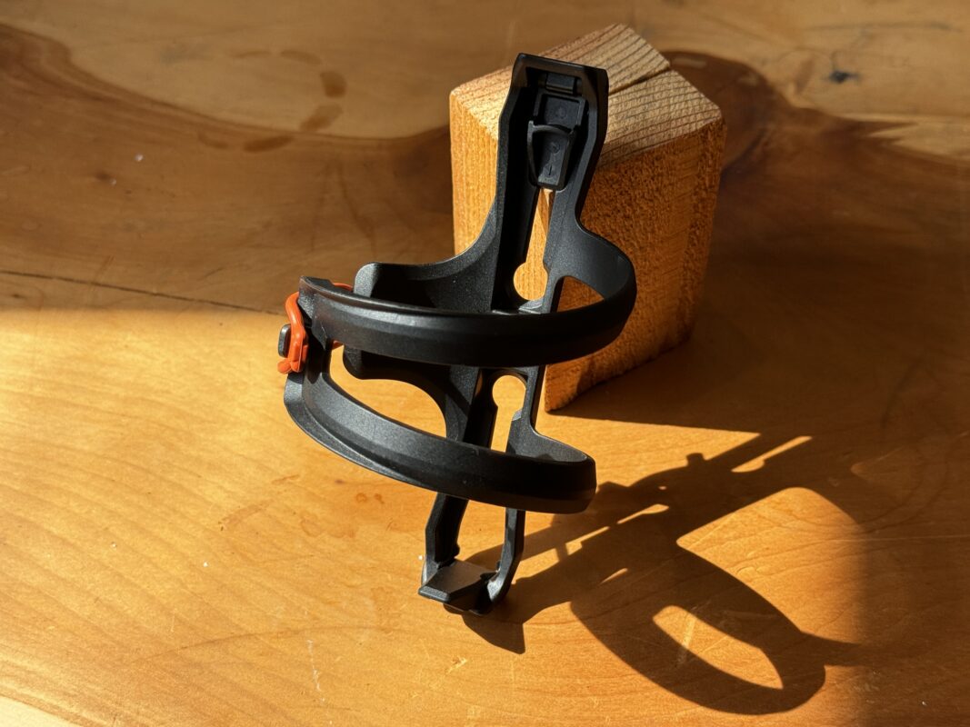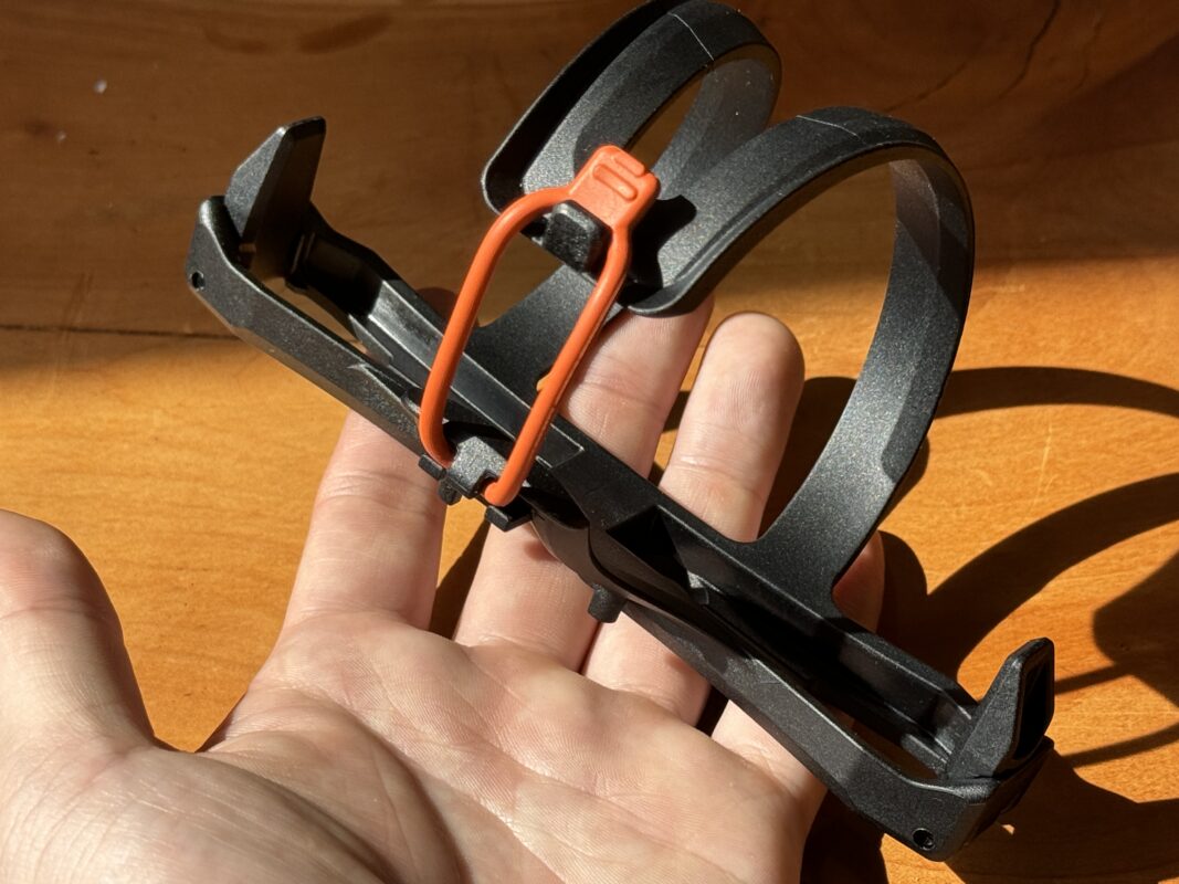 フレームサイズが小さく、上からは抜けないけど、右取りが向いているのか、左取りが向いているのか分からない方でも後から変更可能な点でおすすめのボトルケージ!