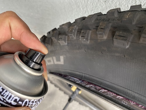 TIPS:ポンプでビードが上がりにくい場合は、MUC-OFFのSILICON SHINEをリムに吹き付けておくとビードが上がりやすくなります!