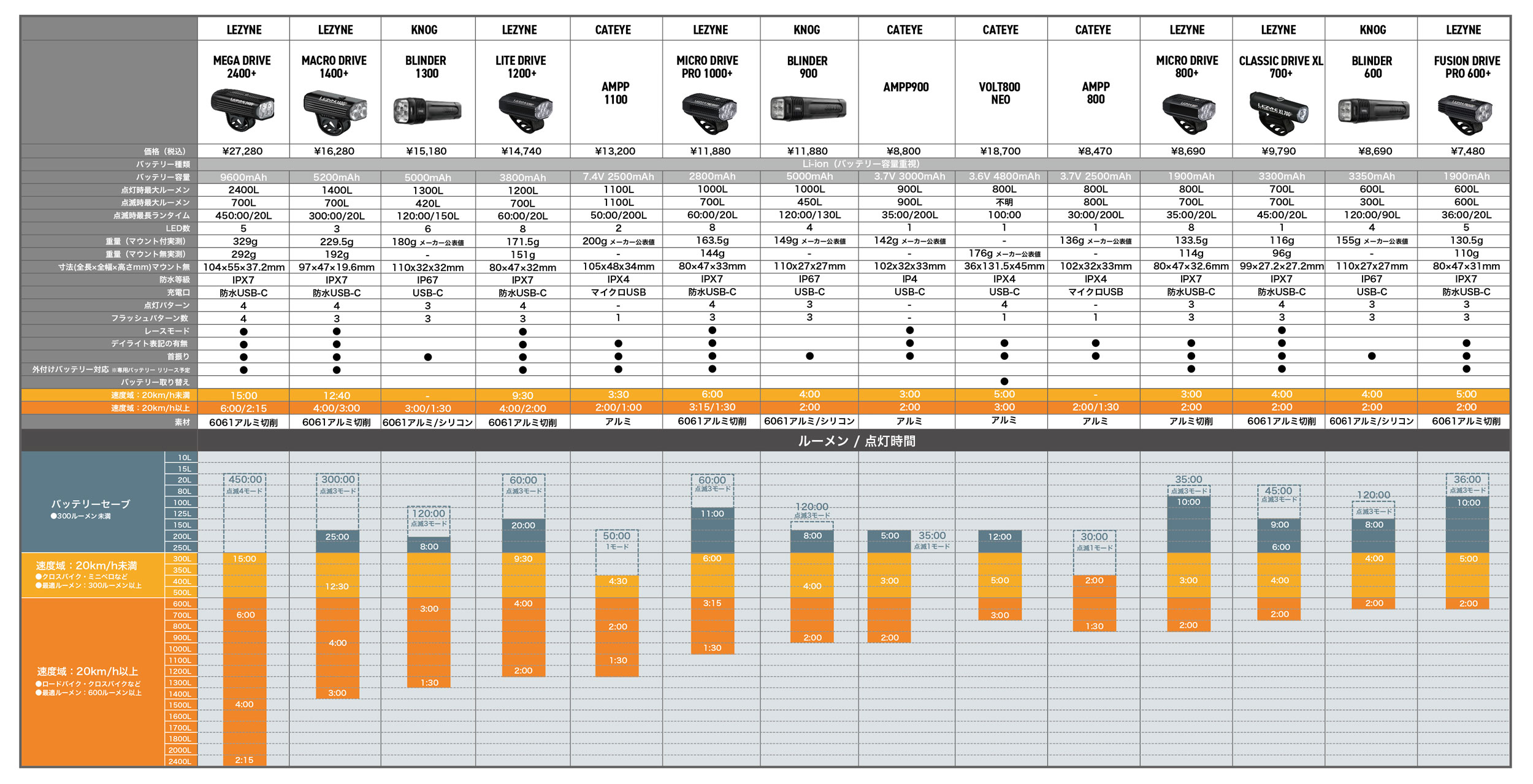 日本でライトと言えばCATEYE。圧倒的信頼性。