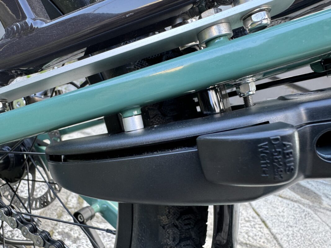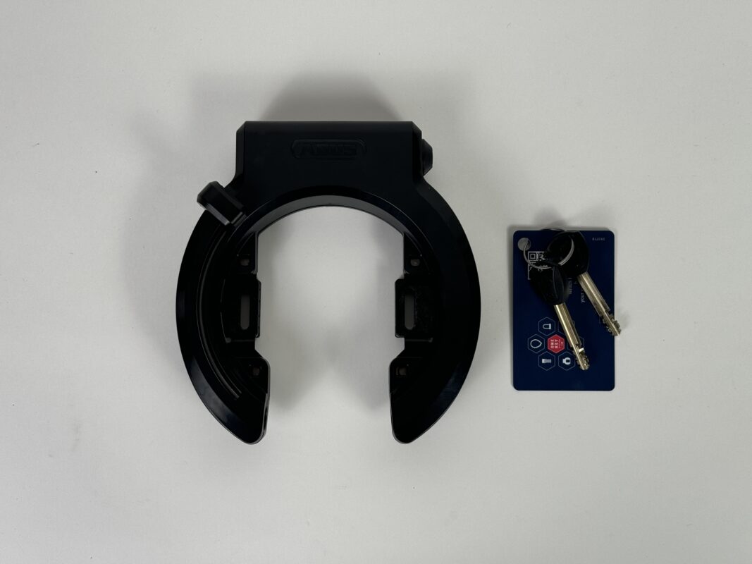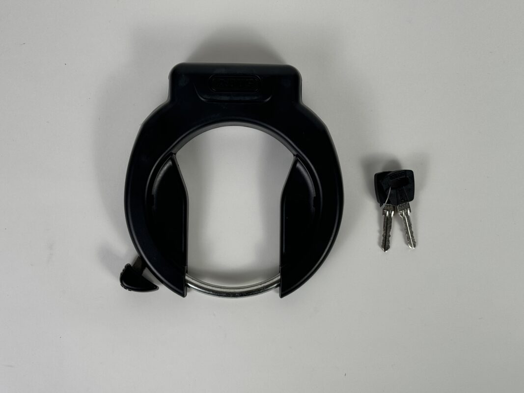 馬蹄錠、フレームロックと言われる自転車にマウントされた鍵。