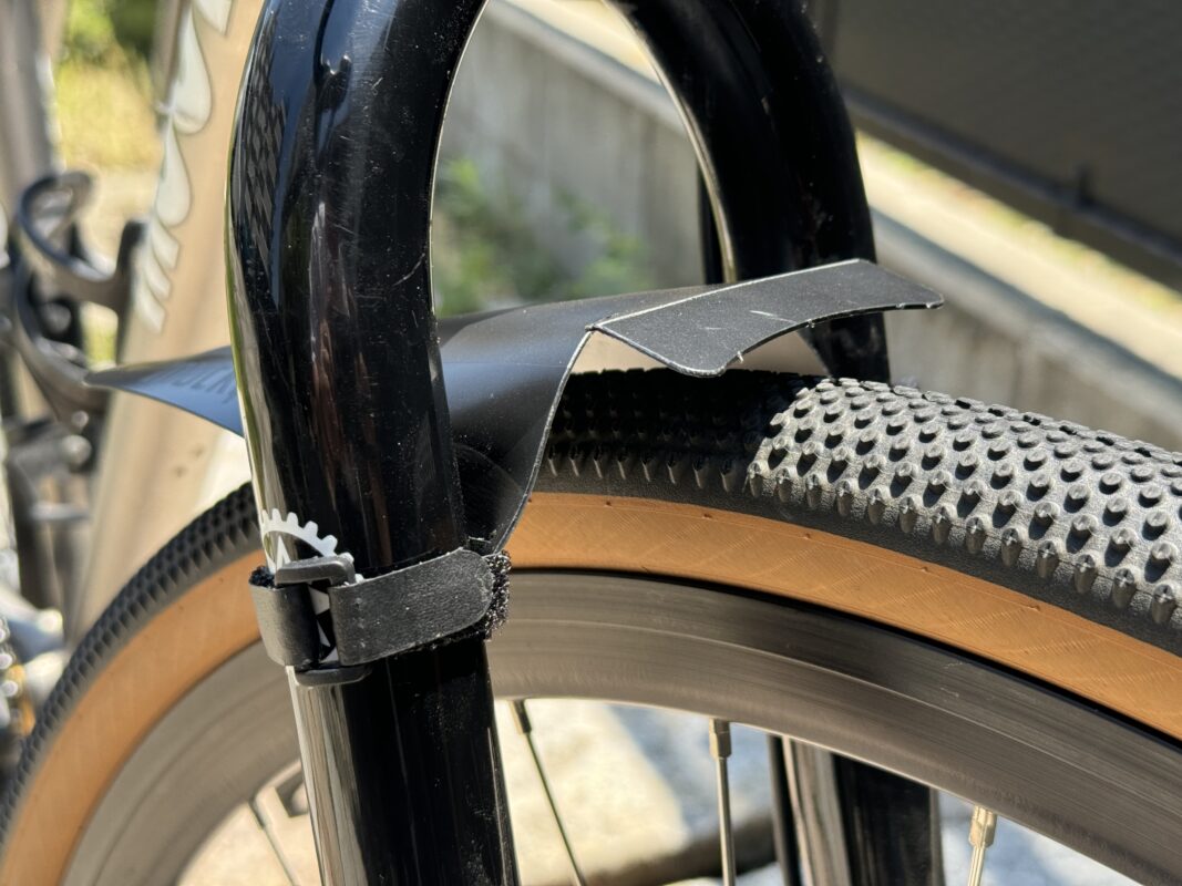 そうすることでプラスチックのフェンダーがフレームに直接当たりにくくなり、傷を防げます。