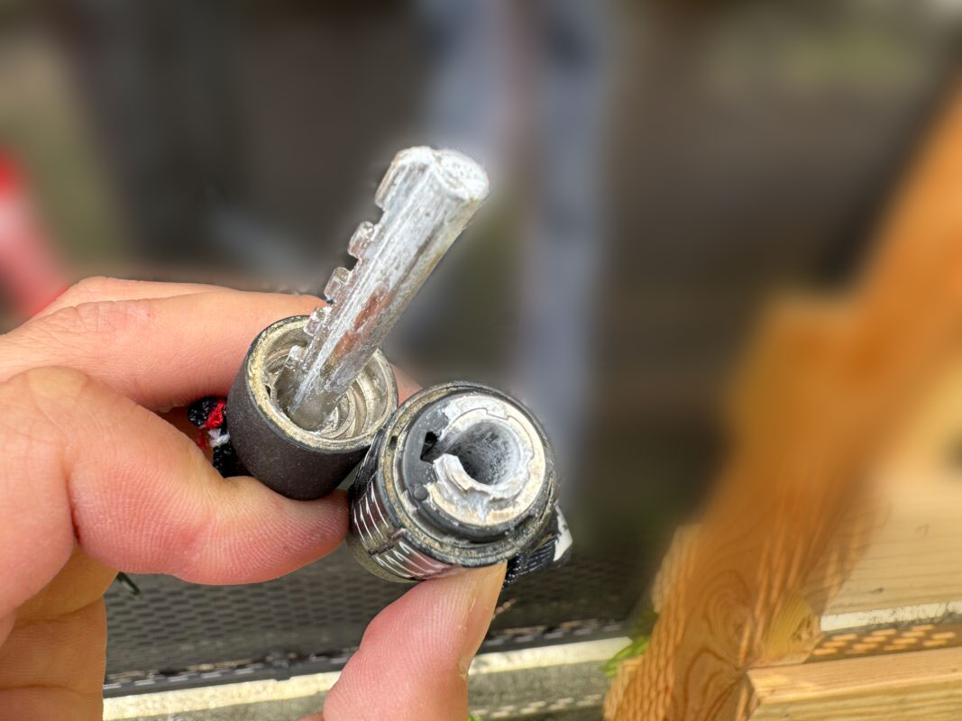 雨風にさらされ、特に鍵のシリンダーは鍵が何度も抜き差しされ酷使されている