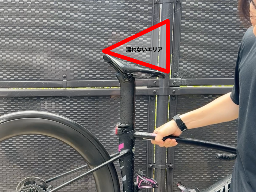 前輪はその後、自転車(ライダー)が迫ってくるので、水しぶきをもろに受けてしまうことになります。