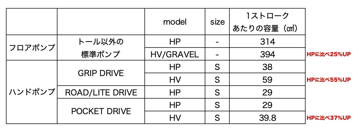 HVモデルはHPモデルに比べて、1回のポンピングで入る空気量が25%UP!!