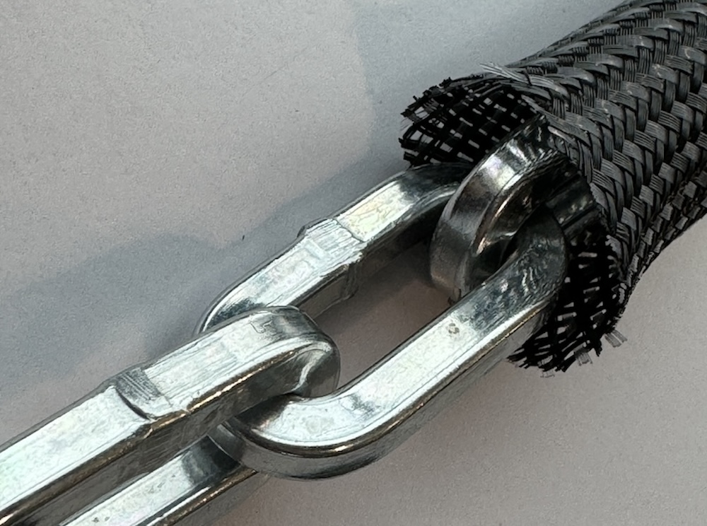 6mmの丸チェーンの間を特殊な形状記憶のケーブルが縫うように通っていて、
