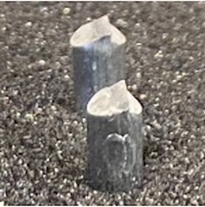 切断時、焼入れがないと、太くてもグニュッと潰れて切断面が三角形に。