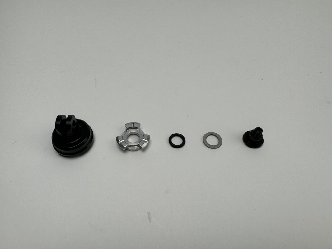 ステムのボルトを使用して、GoProやLED qPRO MOUNTを装着したライトを取り付けるアタッチメントです。