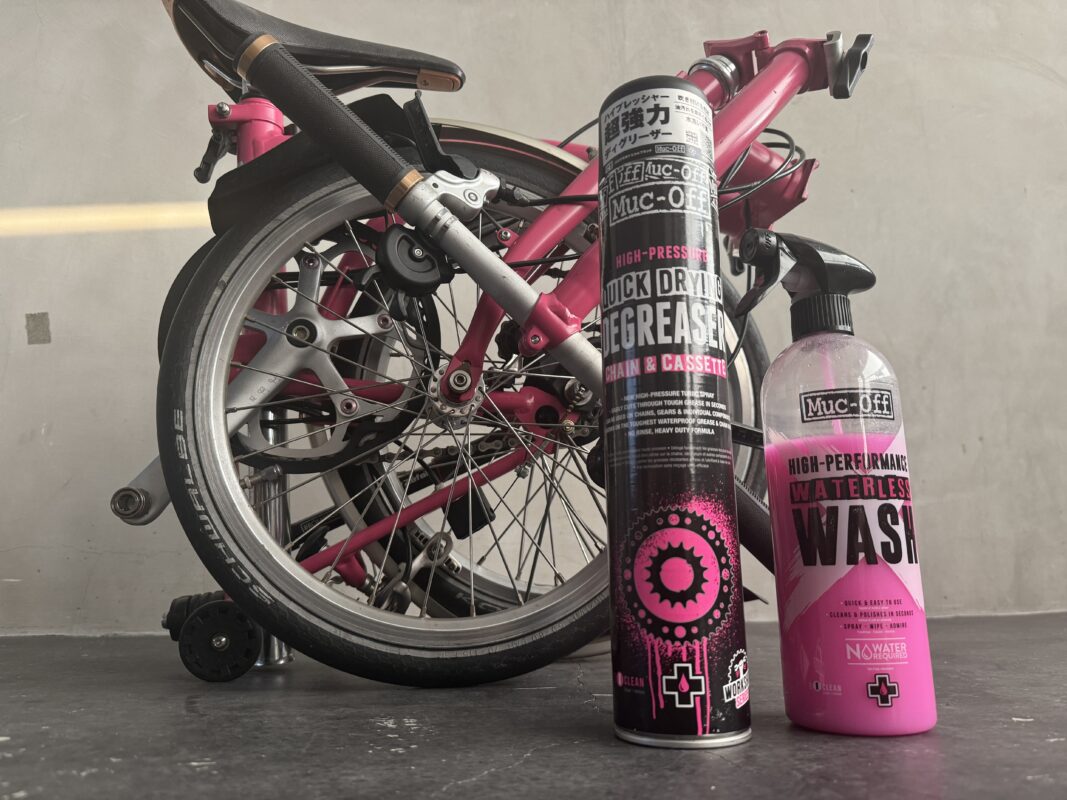 BROMPTONなどの小径車はホイールが小さい分チェーンの位置が低く、洗浄が少し窮屈です。