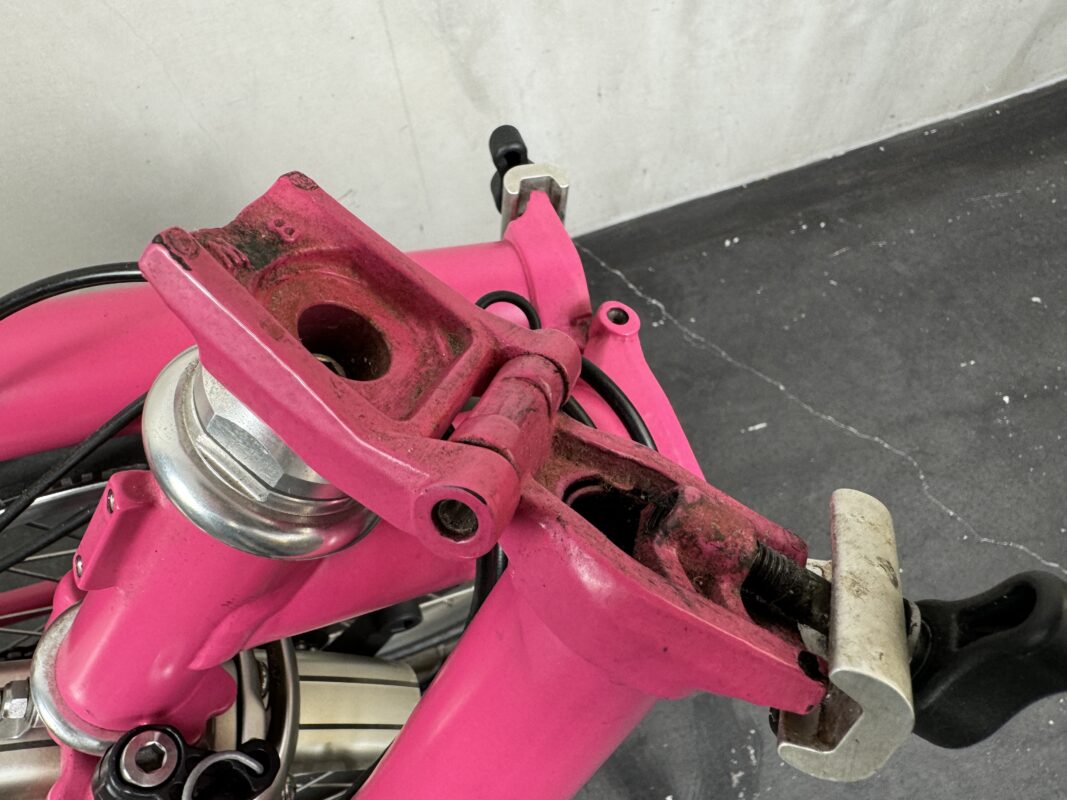 ブロンプトンは錆にくくするため、粉体塗装にして塗装を強くしています。