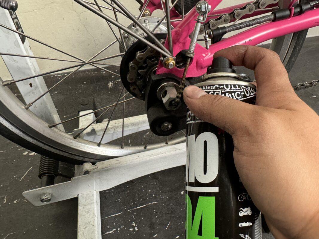 ※チェーンにスプレーすると抵抗が大きくなるので注意。E-BIKEにはOK。