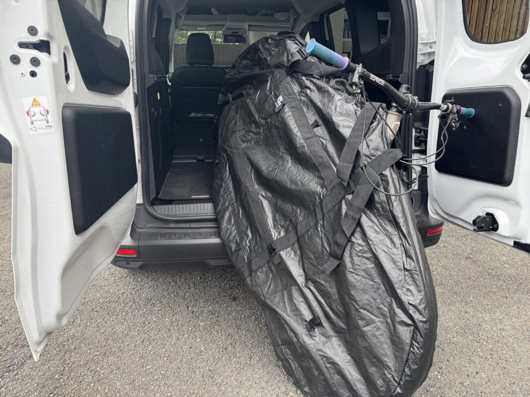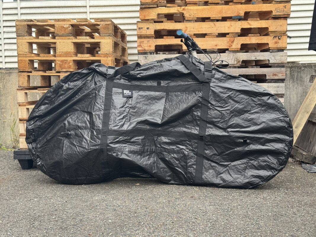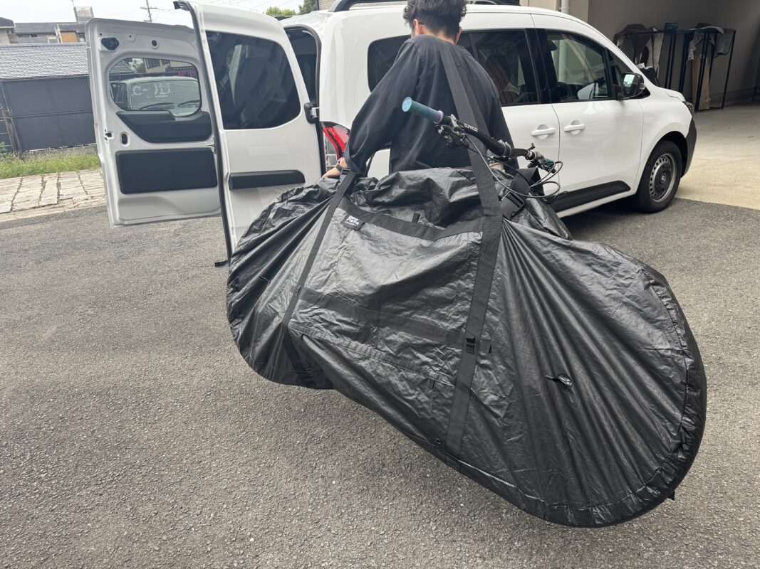 ショルダーストラップがついており、自転車を包んだ状態で持ち運びができます。
