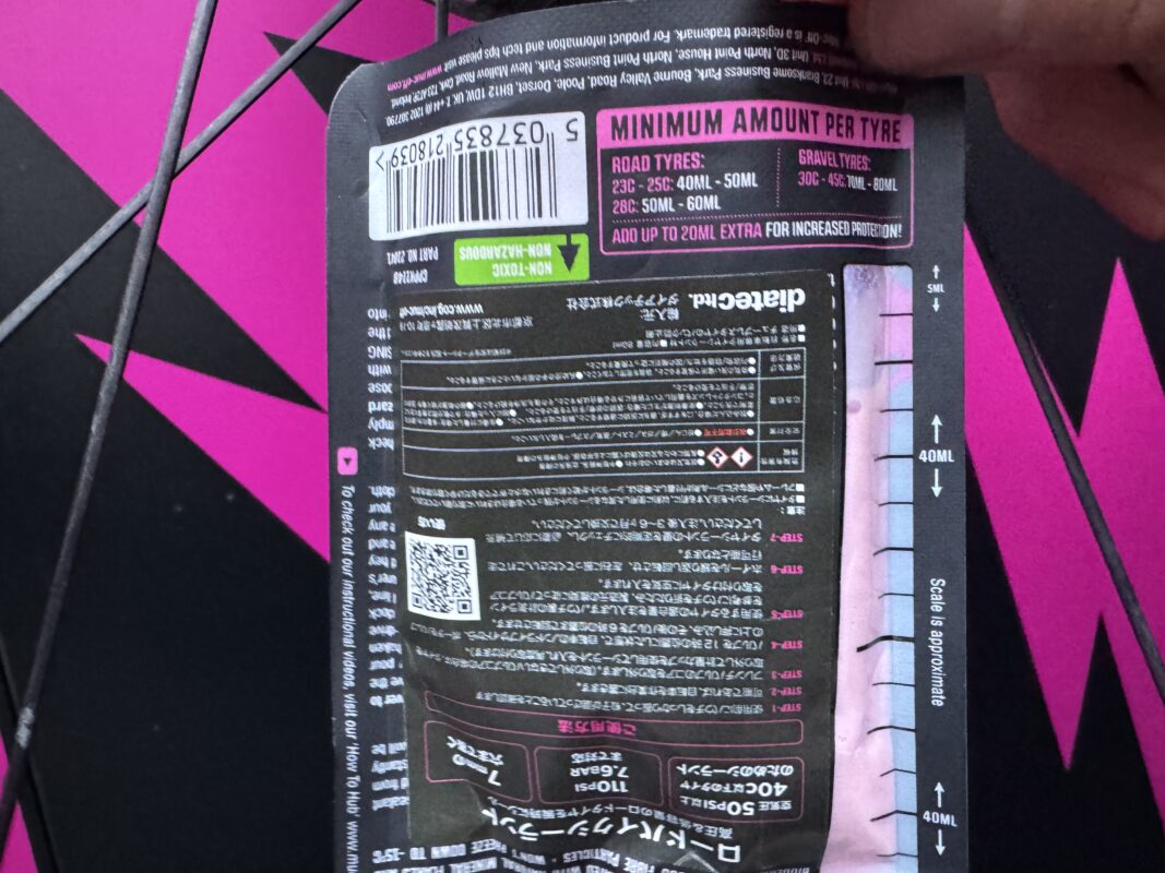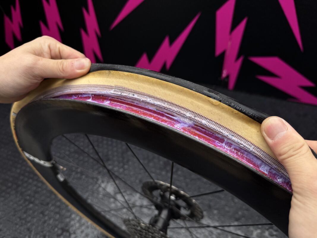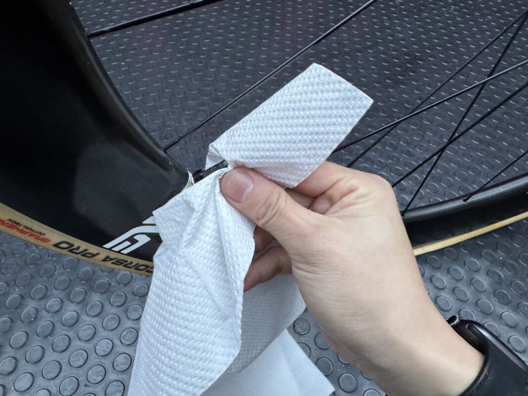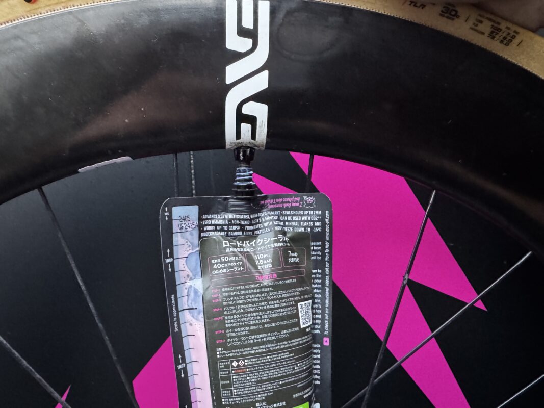 今までMuc-OffのNOPUNCTURE HASSLE TUBELESS(MTBシーラント)を使用していましたが、先日登場したロードシーラントに交換したくなったので先日タイヤを変えたばかり(シーラントを入れたばかり)ですが、洗い流して入れ替えてみました!