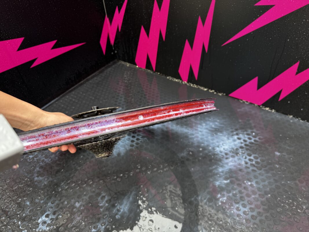 Muc-Offのシーラントは水で洗い流せるとのことでどれだけ綺麗に洗えるのかも検証します。