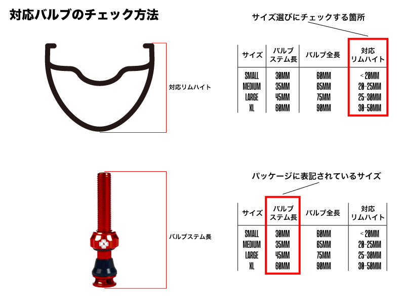 XL: バルブステム長さ60mm 対応リムハイト30~50mm