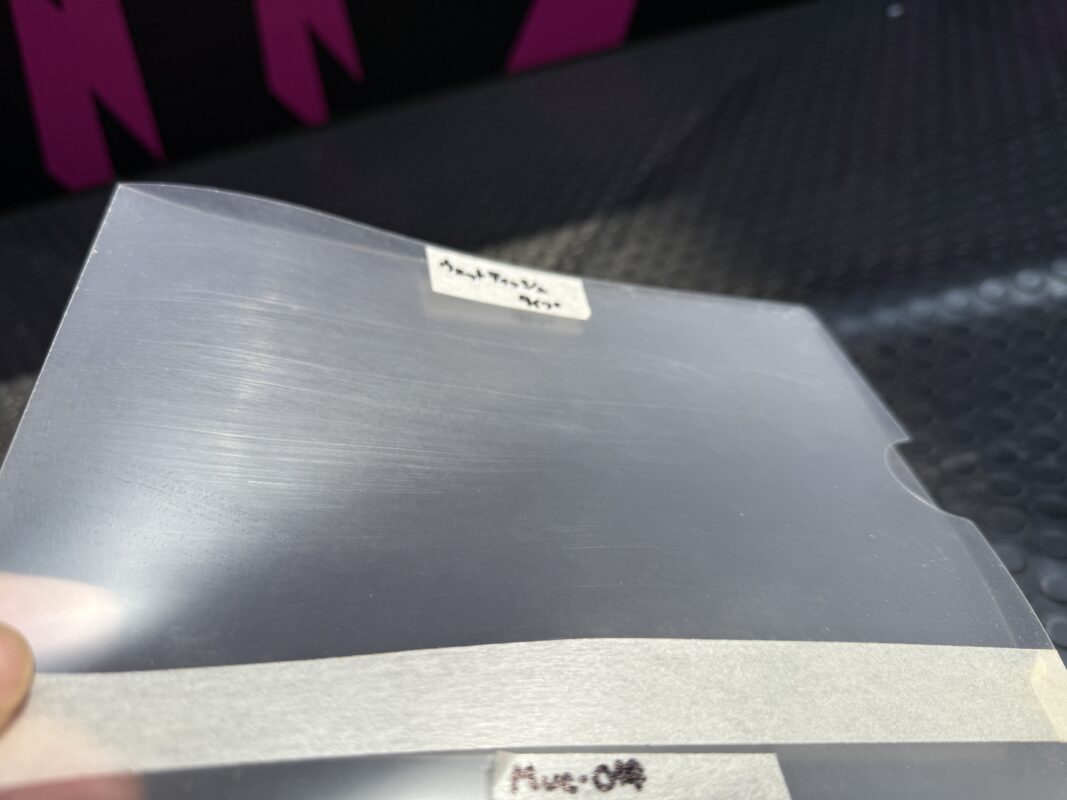 結果、ウェットティッシュで拭き上げた方は、表面に傷が入っているのに対し、