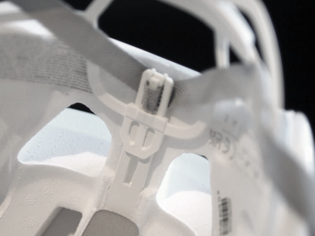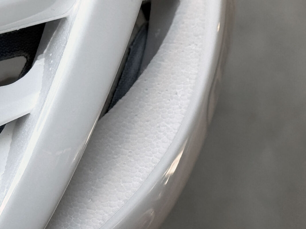 ヘルメットのEPSは通常、粒が大きなもの70%小さなものを30%ほどで混ぜ合わせて作られていますが、ABUSのEPSフォームは、この比率が逆。