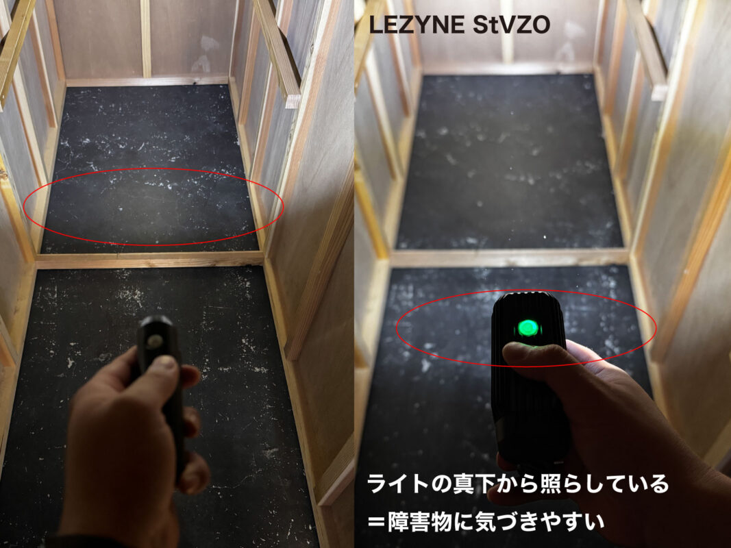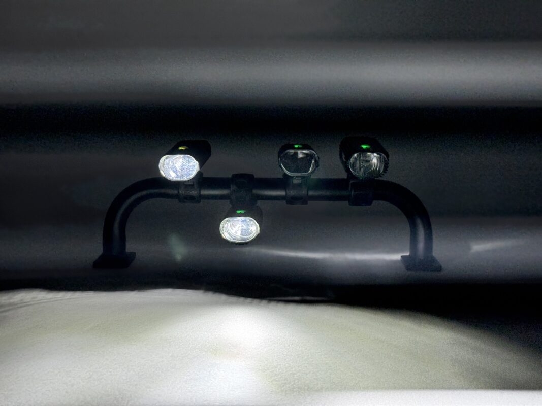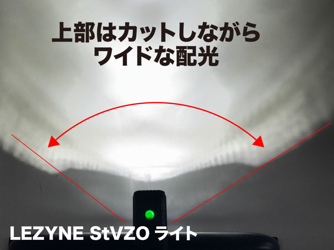 LEZYNE StVZOライトは、ライトの向いている方向だけでなく、ハンドルの真下もしっかりと照らすことができます。