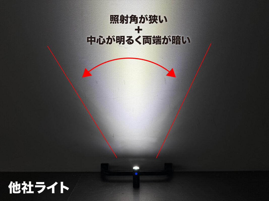 水平にライトを設置した時、ライトの上方向への光をカット。