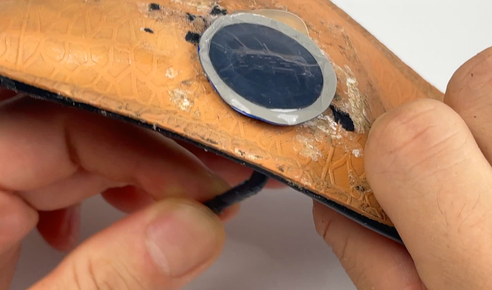 穴にプラグを挿し込みますが半分ほど挿しこんだタイミングで一度止め裏側のフィルムを剥がします。
