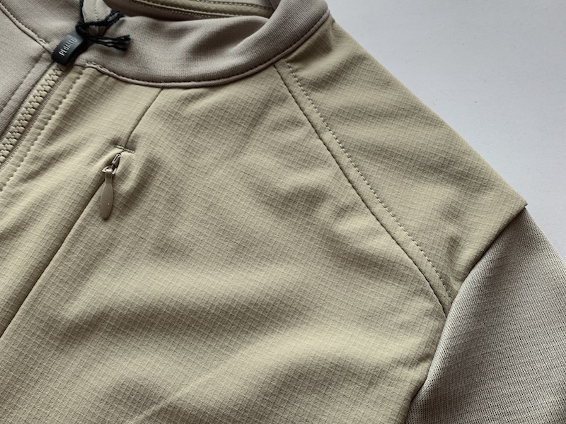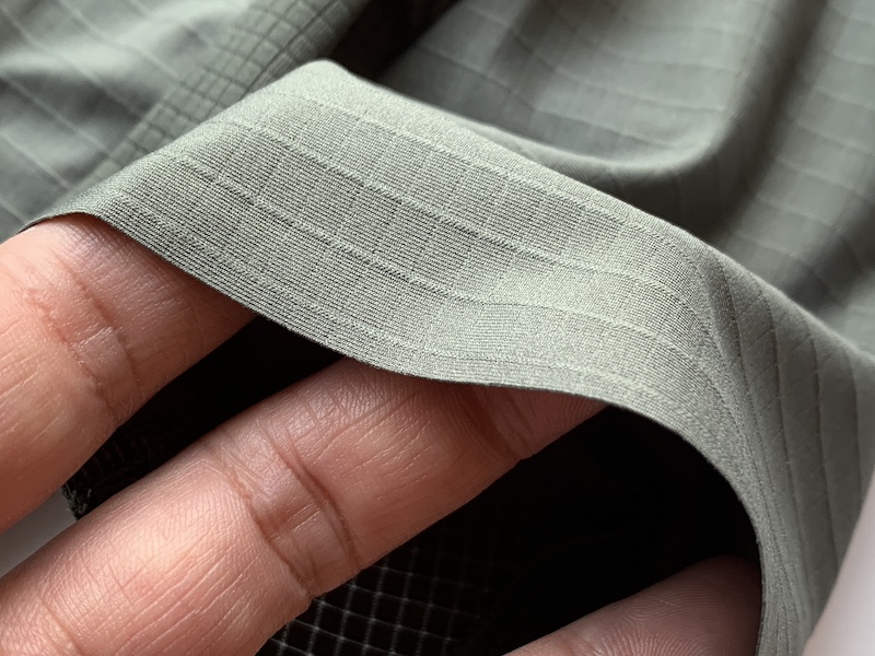 胸と肩、バックポケットには摩擦と伸びからウェアを守るためにリップストップ生地を使用し耐久性をあげています。
