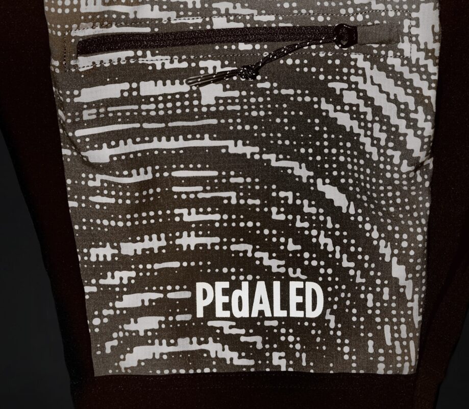 両腿に備わるポケットには反射素材が仕込まれており、夜間のライドでの視認性を高め安全なライドを後押しする機能がついています。