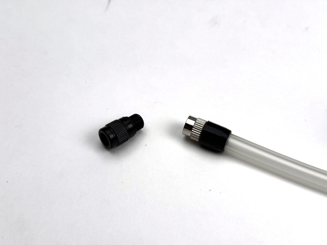仏式の場合は黒いパーツを装着、米式は取り外してねじ込みます。
