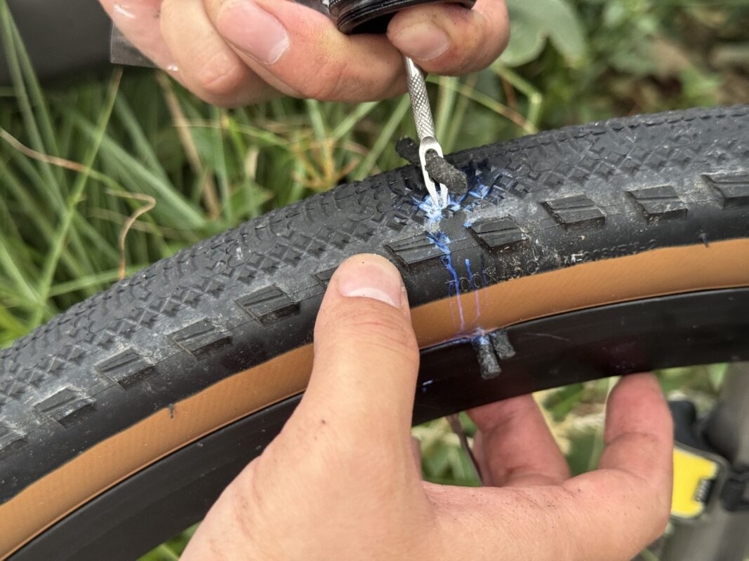 パンクチャープラグ(タイヤワーム)は即効性があり、塞ぐ力は強いですが、