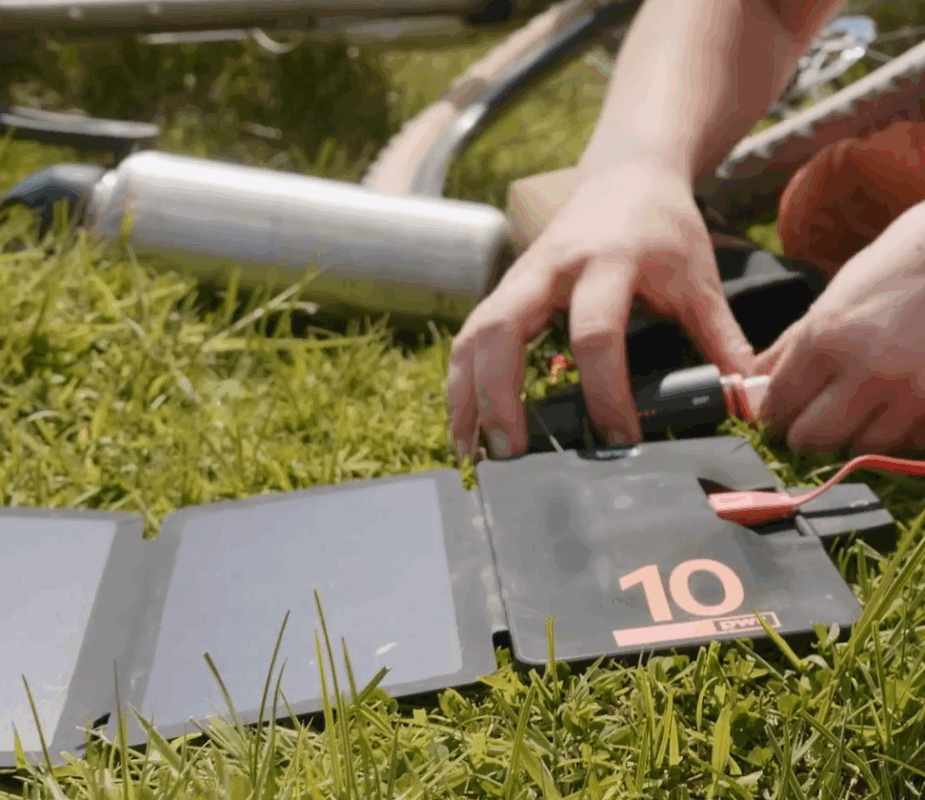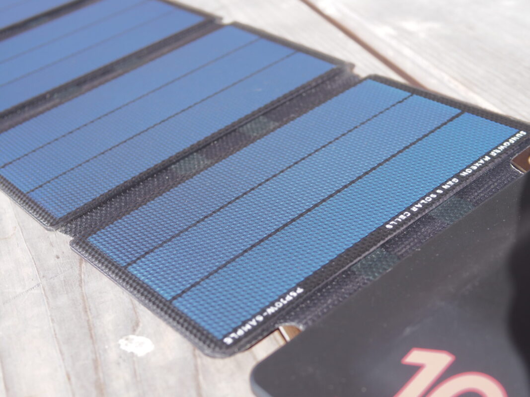 PWR SOLARのスマートなデザインは、使用しないときはスマートフォンほどの大きさの小さなコンパクトなユニットに折り畳むことができます。