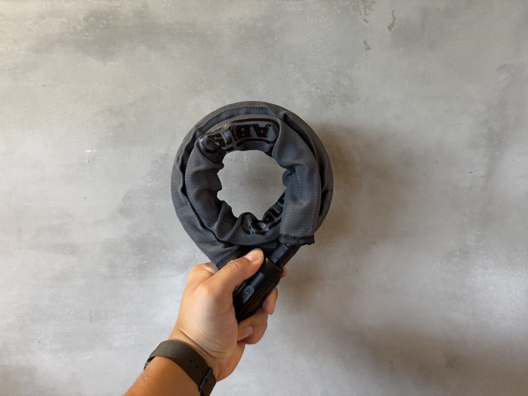 スチールシェルが適度に動き、形状を維持してくれるので、少し入り組んだ場所への施錠も楽々。