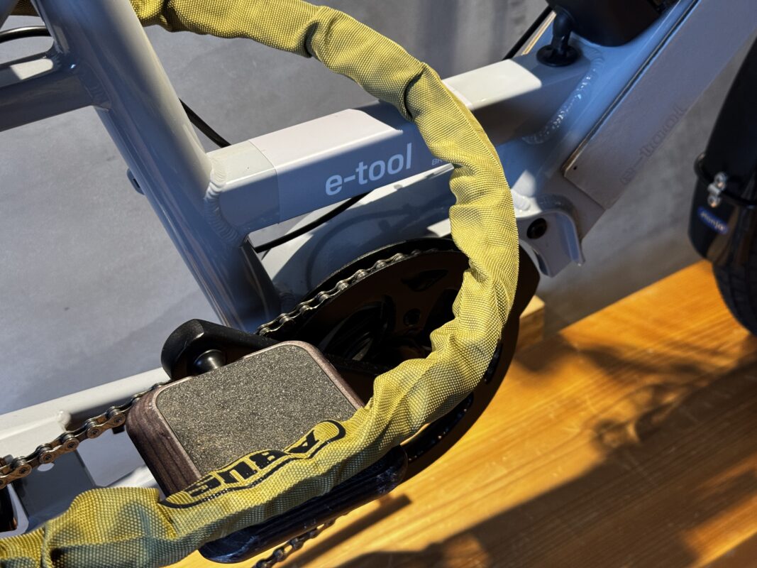 チェーンロックでは、ホイールの間通そうとしてフレームなどに当ててしまうことも。