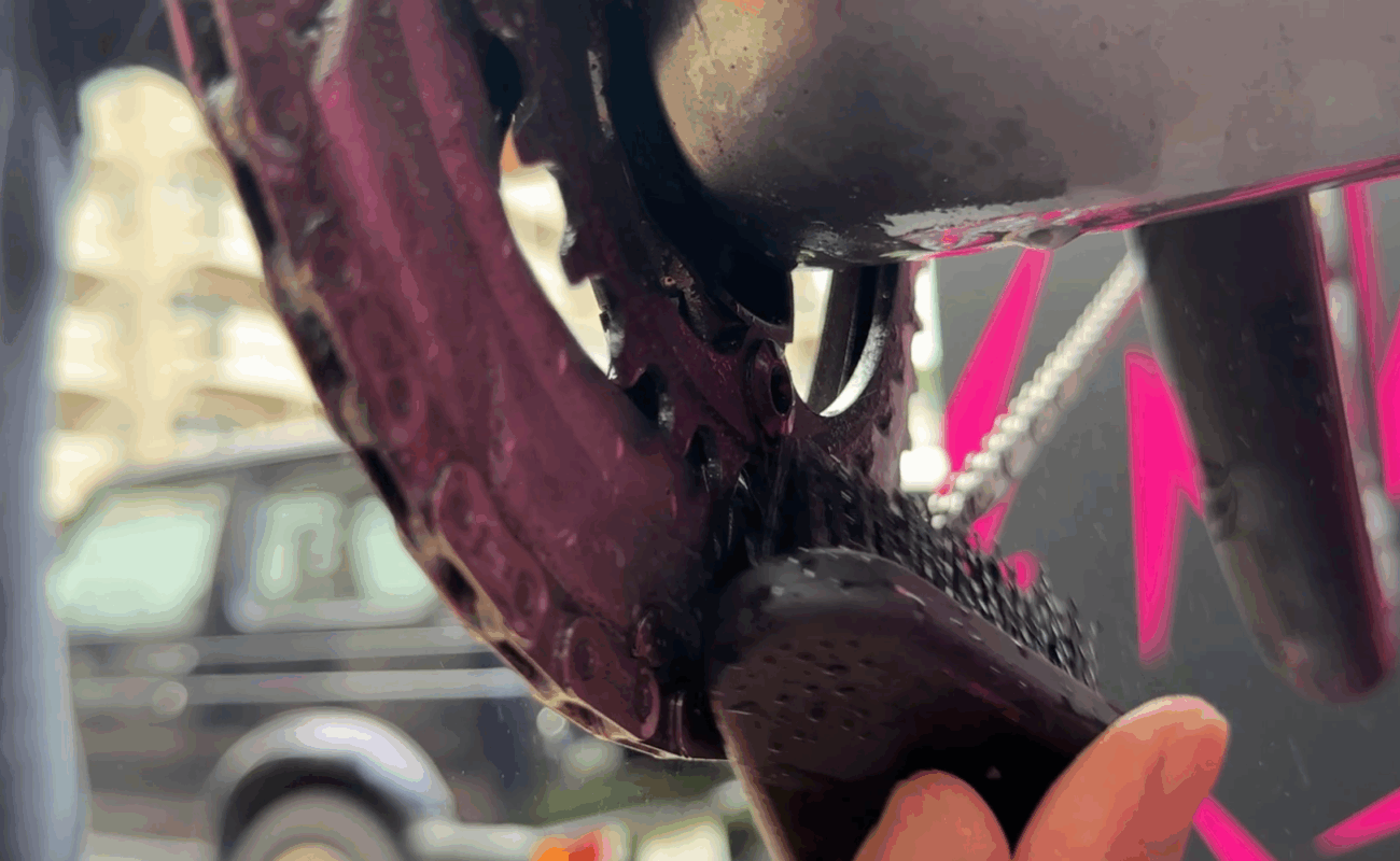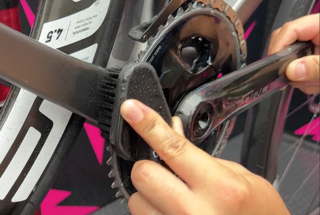 通常のブラシでは届かないチェーンリングの間も洗浄できます。