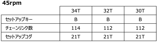 ※45rpmはSRAM社フルマウント動作確認の定める規定値より短いRCのため、社内で動作確認を行なった数値となります。