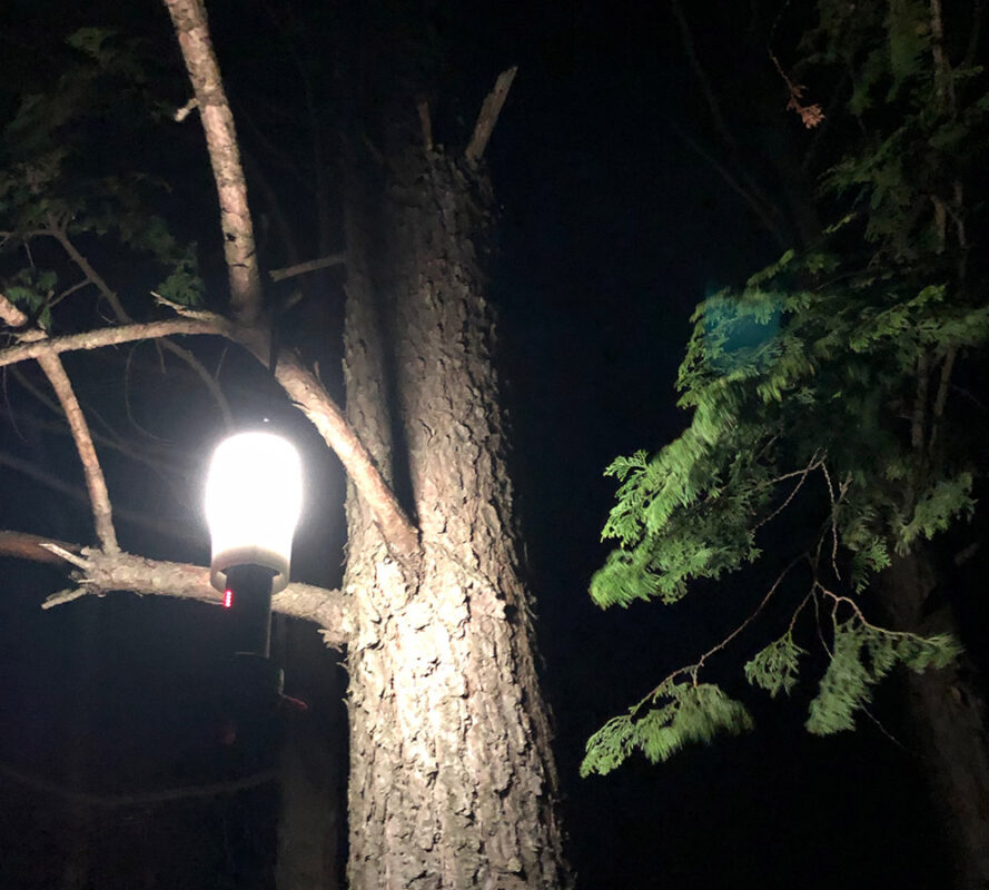 明かりが何もないので、PWRランタンを木に吊るし21時就寝。