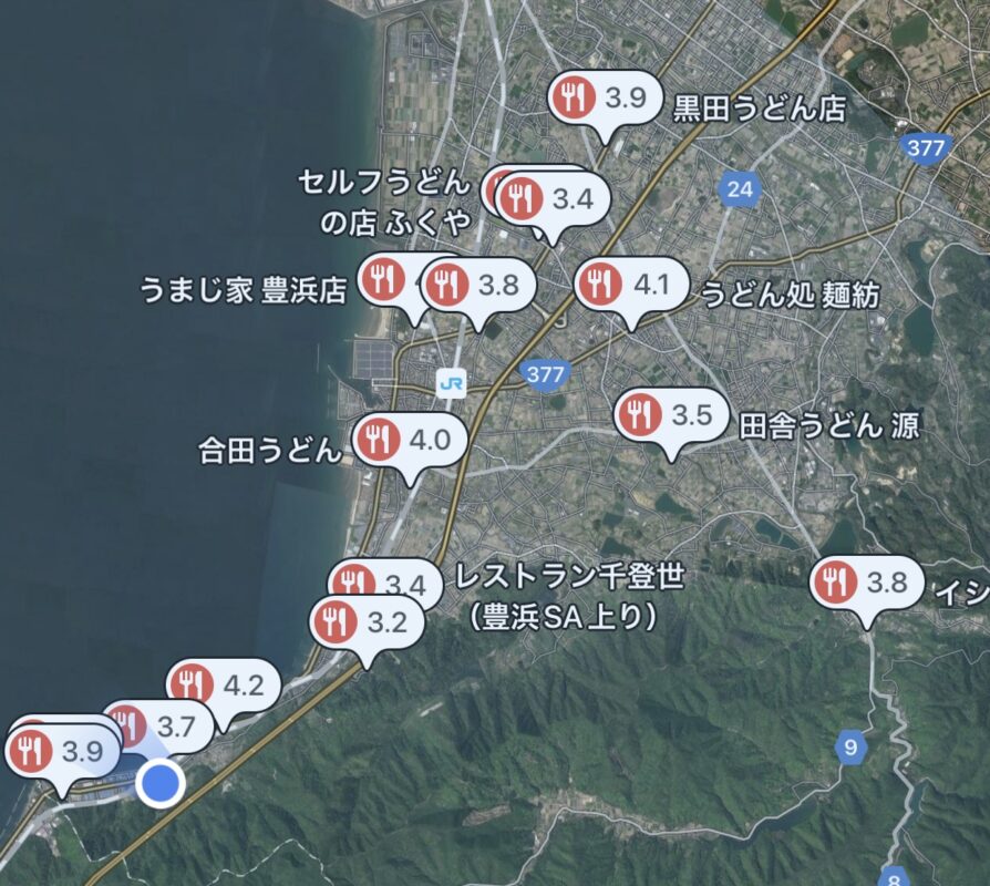 私の大好物のうどんを食べるべくマップで「うどん」検索すると至る所にうどん屋が!