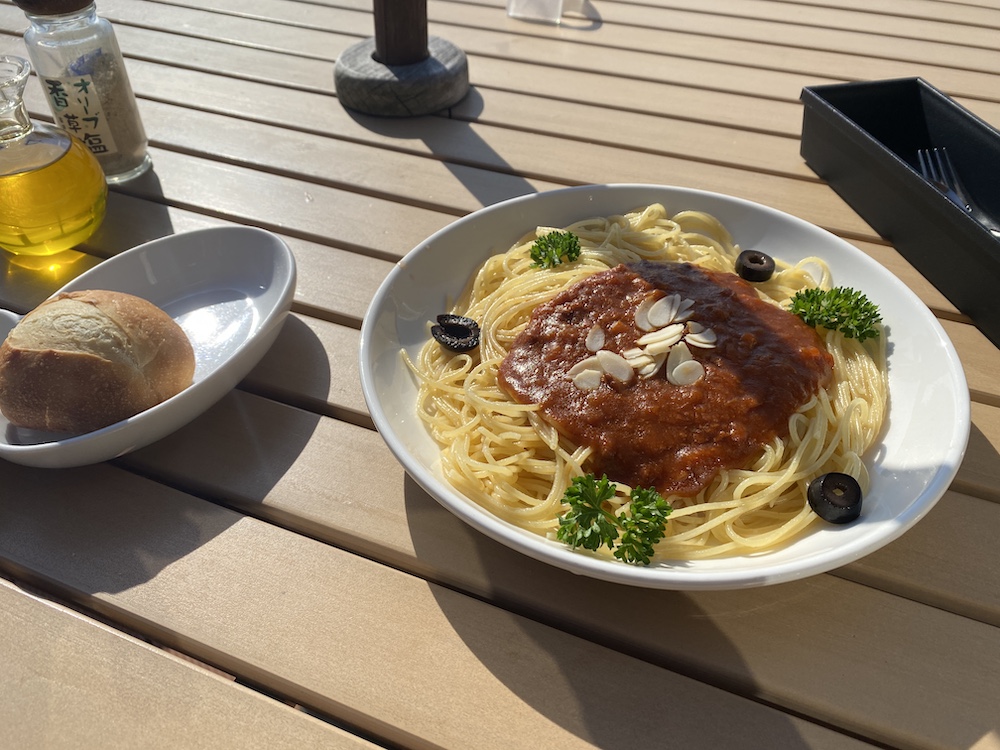その後、小豆島の各所を巡りながらお昼はオリーブ公園内にあるレストランのテラス席で、