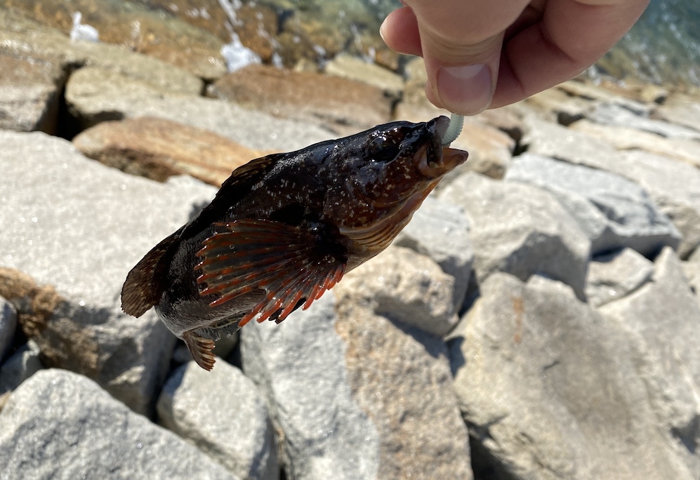 近くの防波堤から出港までの間、またまた釣りをしました。