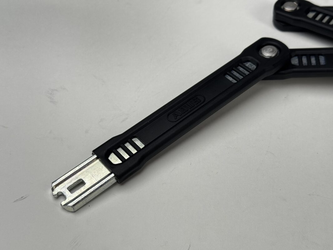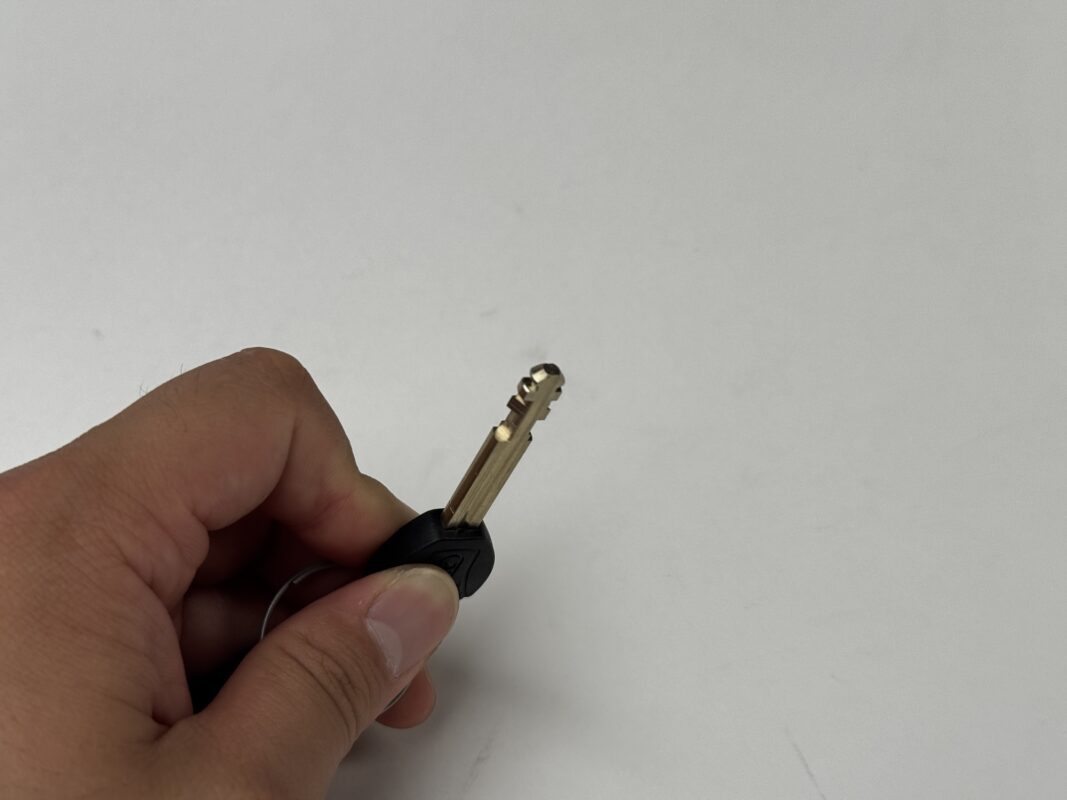 キーシリンダーが上部に位置し、その下にブレードを固定するヒンジがある構造でした。