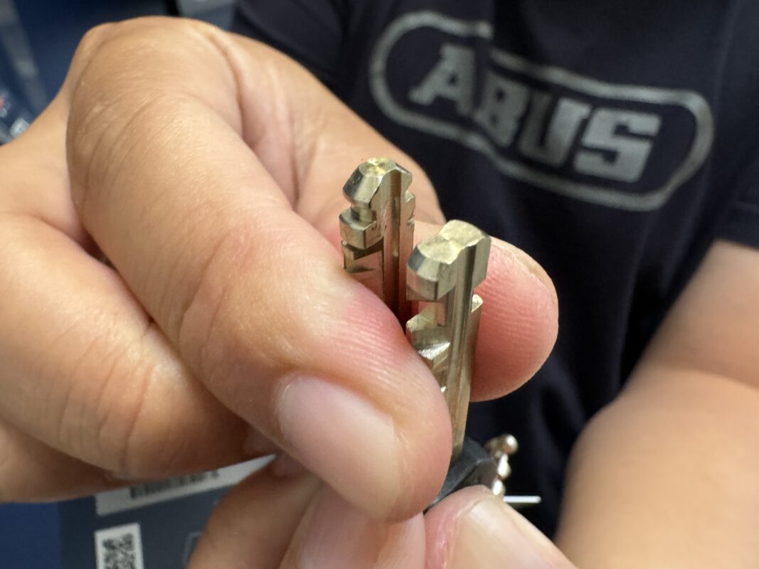 X-PLUSキーはキーの先端にも斜めのカットが入っているため、より強固になっています。