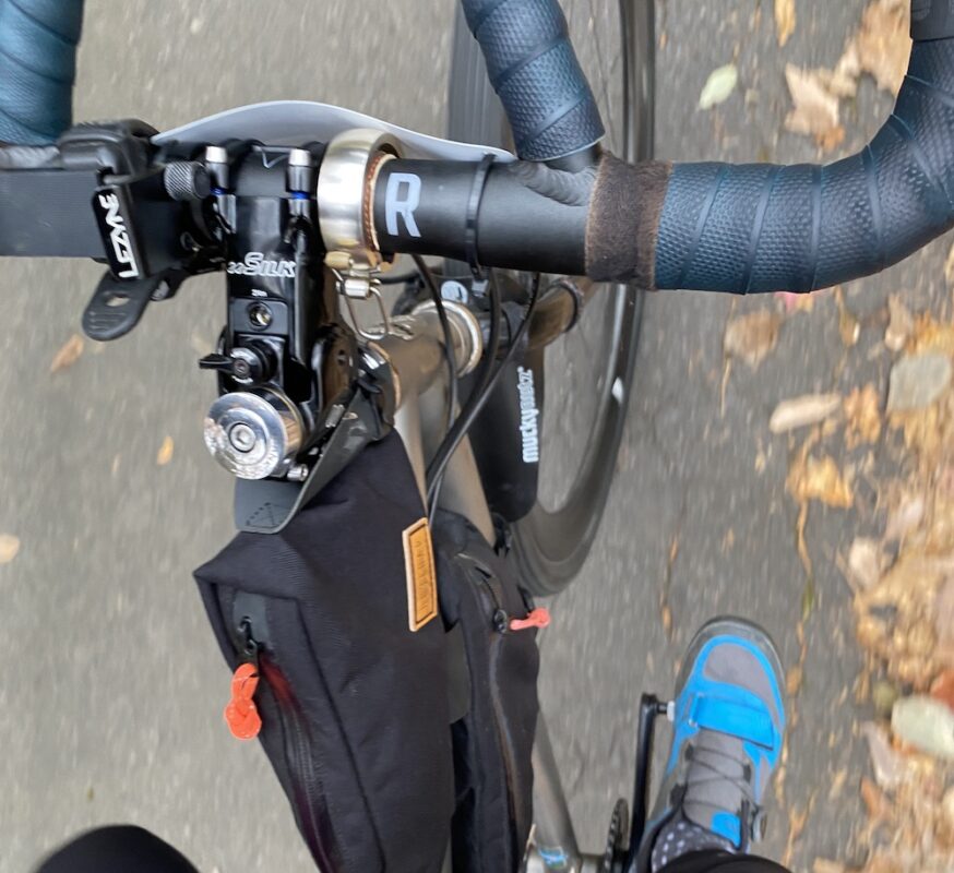 この便利なRESTRAPのステムバッグには、ペットボトルの水が入り、一番使うバッグ。