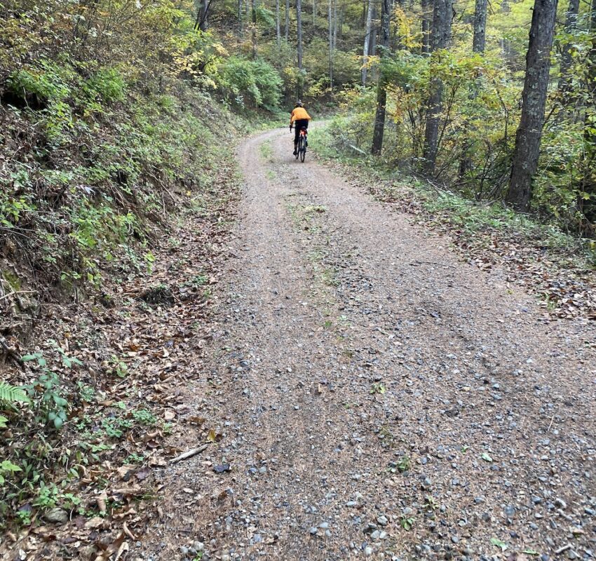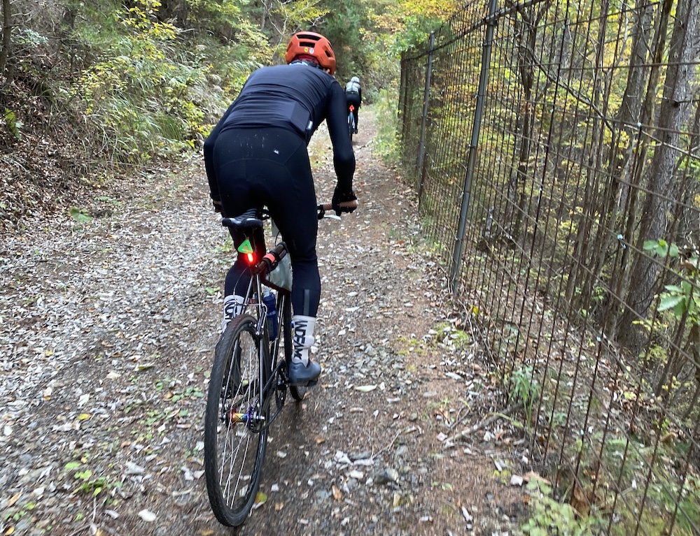 前半淡々と登りが続き、グラベルのダウンヒルの入り口に。