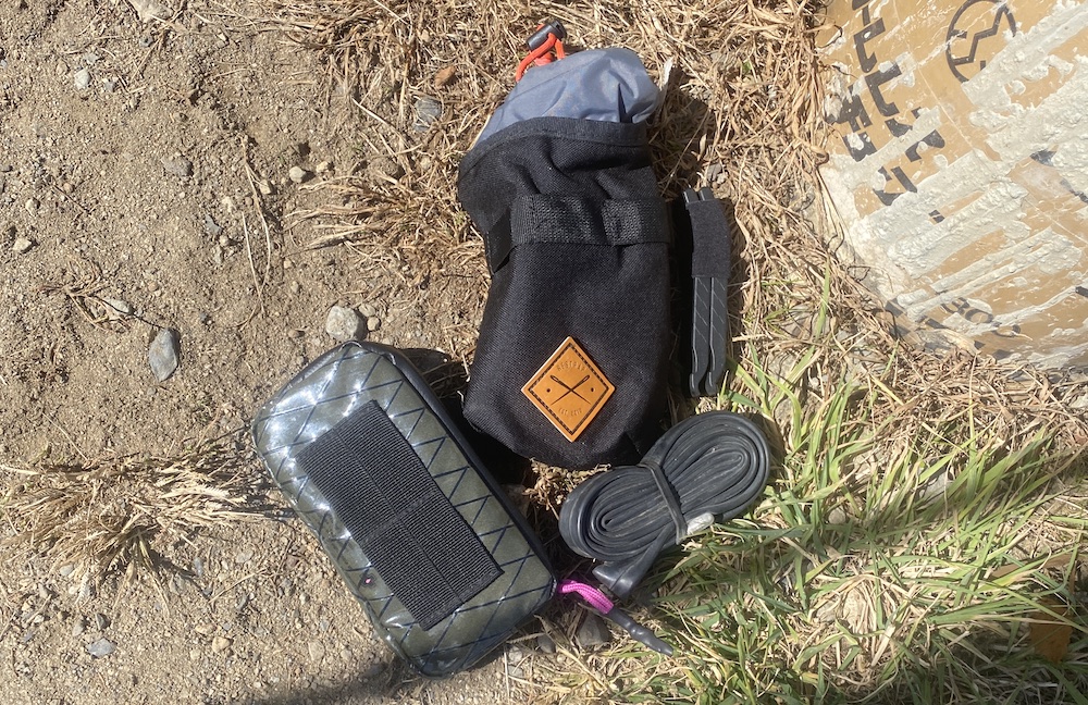 フレームバッグごと、予備のチューブもない、タイヤレバーも工具もない。