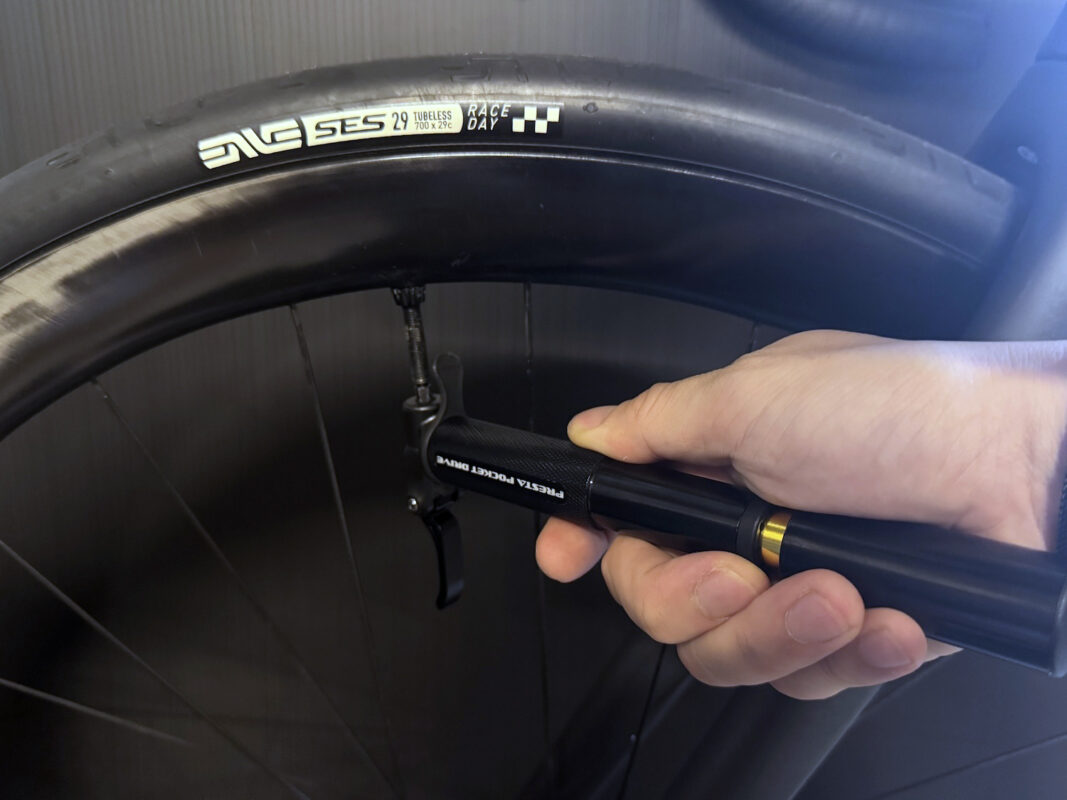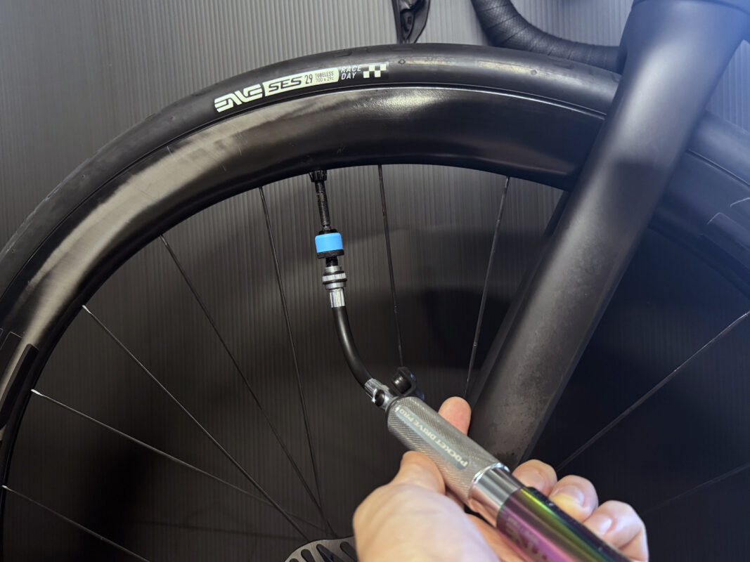 clik valveは、フレンチバルブ(仏式)対応の「レバーを起こして固定するタイプのポンプ」であれば、そのまま空気を入れることが可能です。