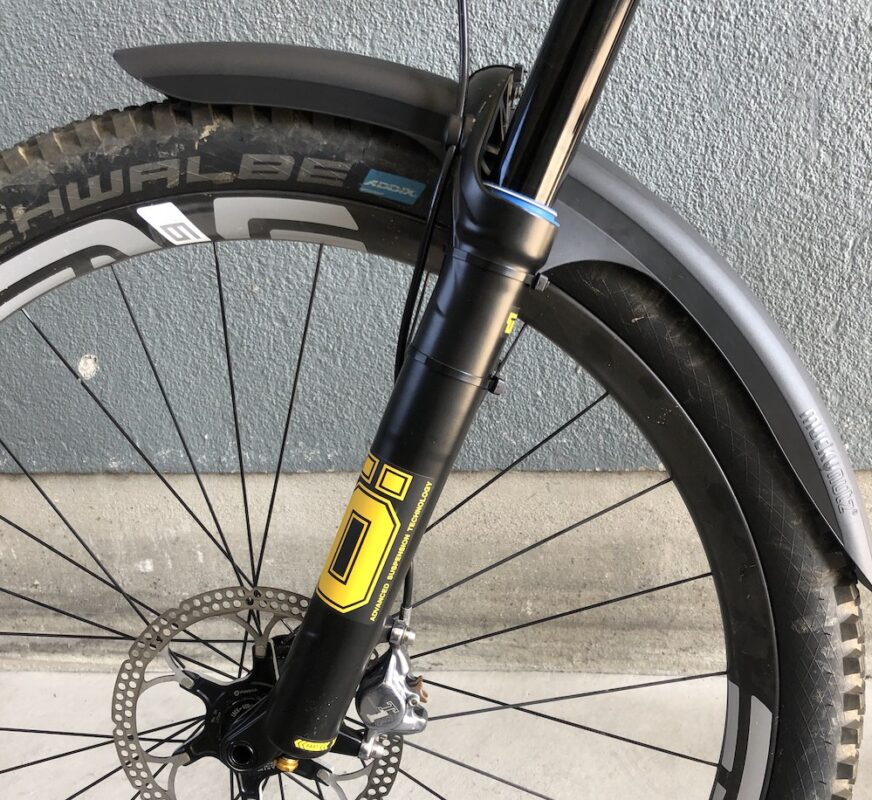 フルフェンダータイプのMUG GUARDはよりしっかり泥跳ねを抑えてくれます。