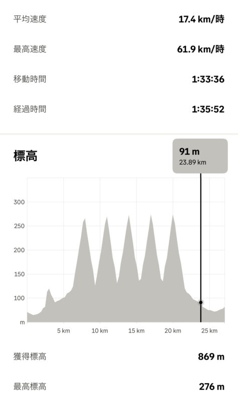 近所の丘や山をひたすらヒルクライムのインターバルトレーニング。ヒルクライムとインターバルという嫌いなトレーニングを2つ組み合わせるのは地獄。。。でもやるしかない。