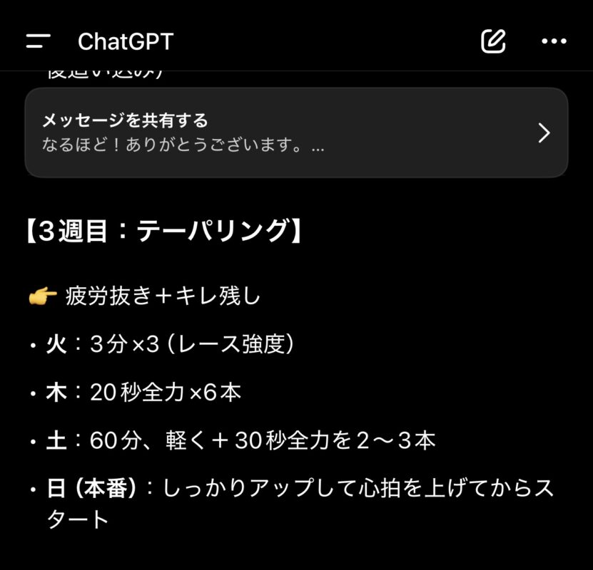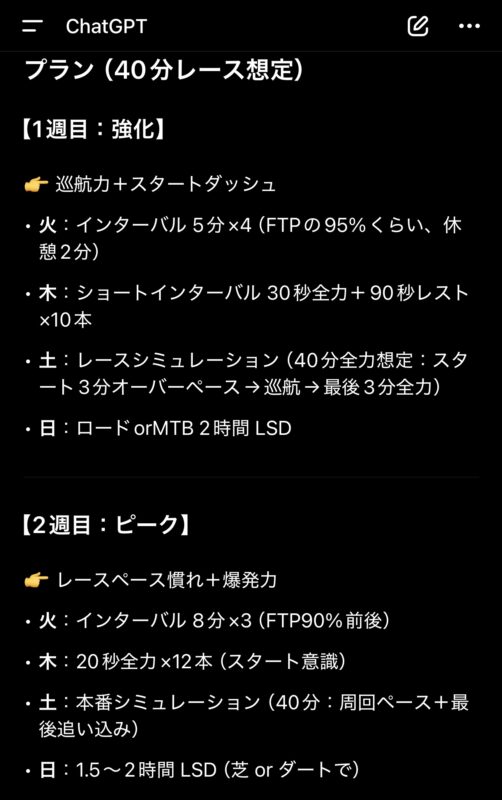 更にChat GPT(以下 : チャッピー先生)に作ってもらったトレーニングプランに従ってみることに。自分に1番足りないのはフィジカルだ。そして余っているのは体重(笑!)