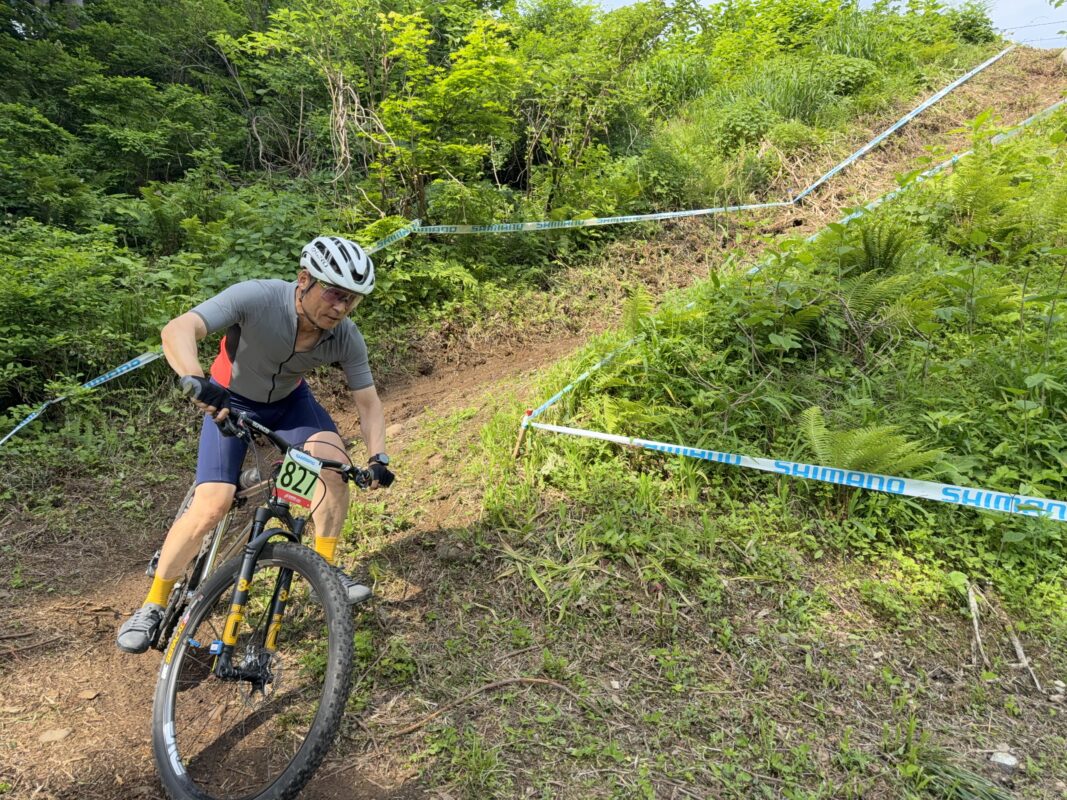 マ:そうなんやけど、みんな速すぎ。特に登りはコース幅ありすぎて抜かされ放題。下りは差が詰まるけど、抜かすまでは詰めきれず、次のセクションではもっと差が開くの繰り返しで、どんどん順位が下がった。