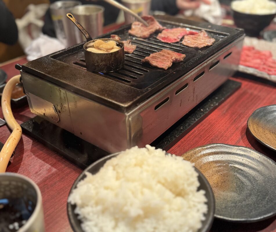出発前夜の金曜日は誕生日と結婚記念日を兼ねて焼肉へ。カーボローディングという名目で腹一杯食べる。尚、チャッピー先生は「肉の部位を考えて食べたらOK」と言っていたが、そこまで自制心は働かないぜ(笑)