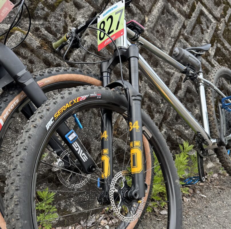 それにしても最近はXCOのバイクはフルサスの割合いが高い。クロモリフレームにリジットフォークさらにフラットペダルのマスダはかなり異色の存在感を放っている。どうやら周りの方とも「リジットフォークやばいですね~(笑)」みたいなこと話してた