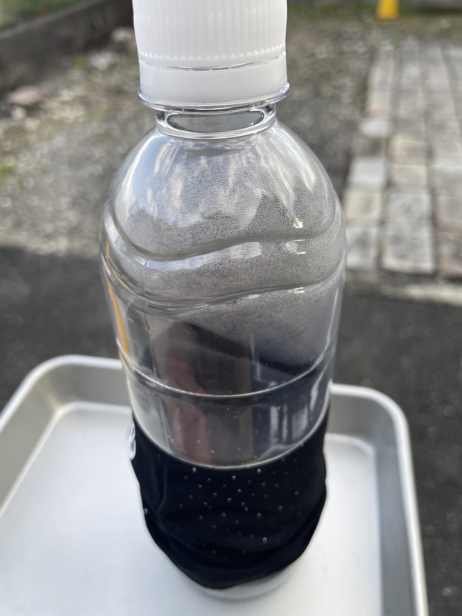 ペットボトルに水を溜め、SOCK COVERでふさぐとちゃんと水分(水蒸気)は通しています。