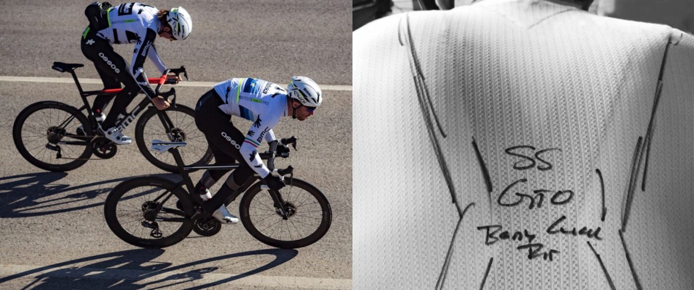 「ライクラ」を採用したサイクリングウェアを開発したあと、新たな問題に直面します。トップスとボトムスで分かれているため、ペダリングの際にボトムスがずれ落ちてきてしまうのです。